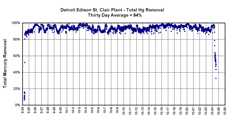 實際應用中汞脫除率統(tǒng)計結果